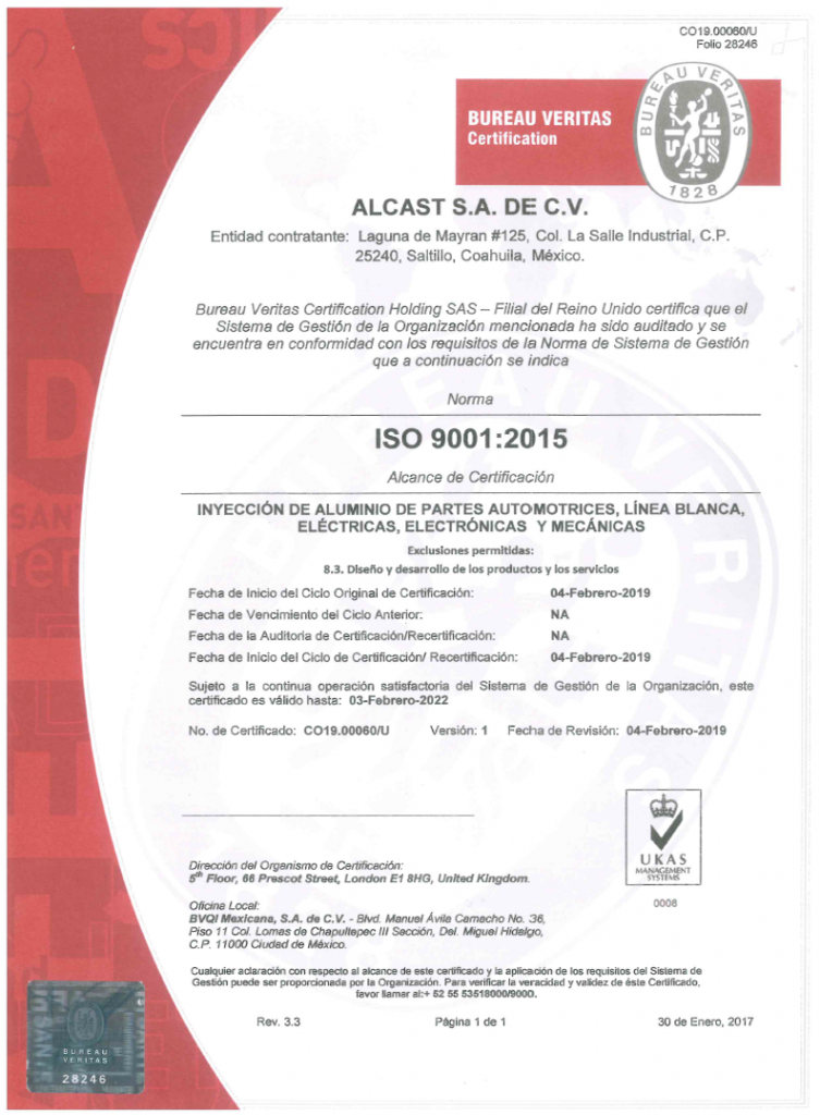 Propiedad y operación familiar. ALCAST SA DE CV se encuentra en Saltillo y Ramos Arizpe, Coahuila. Establecida en 2007, se creó originalmente para abastecer al sector eléctrico, luego, debido al aumento en la demanda de fundición a presión, sus operaciones aumentan y hoy en día es uno de las compañías lideres de tamaño medio en el mercado con un crecimiento continuo. Brindando piezas de excelente calidad y servicio al cliente en todo el mundo.